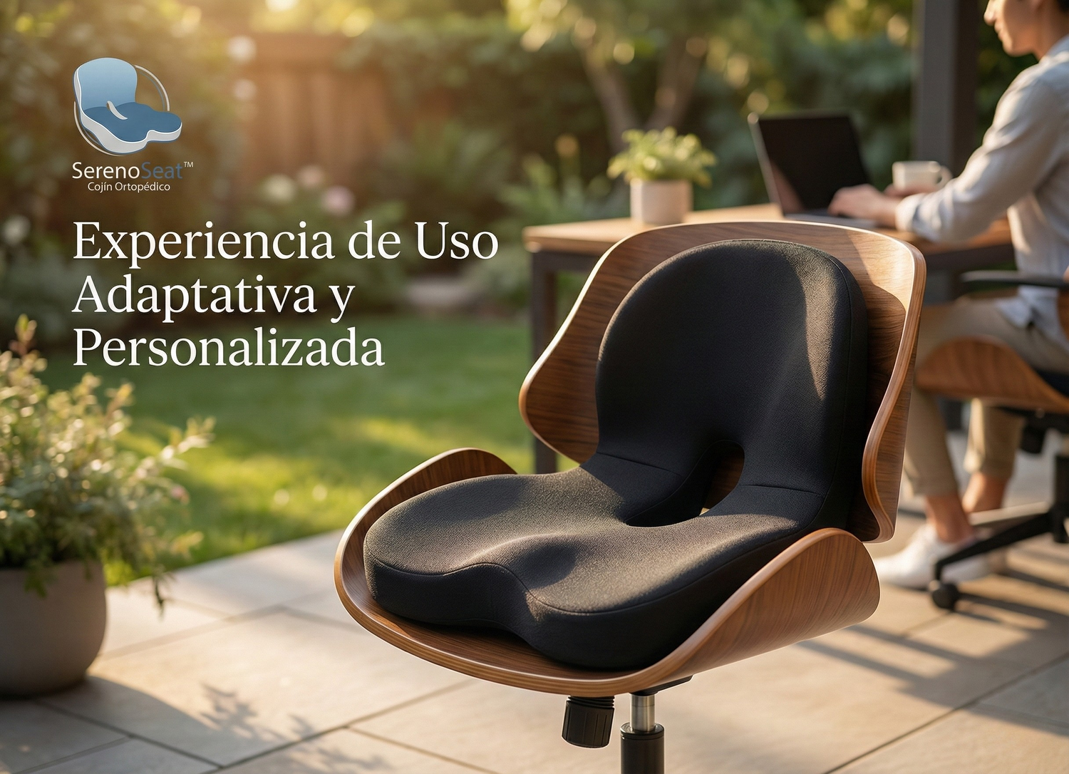 SerenoSeat™ utiliza espuma viscoelástica avanzada que distribuye la presión corporal y corrige la postura, proporcionando alivio rápido y confort prolongado para quienes pasan mucho tiempo sentados.